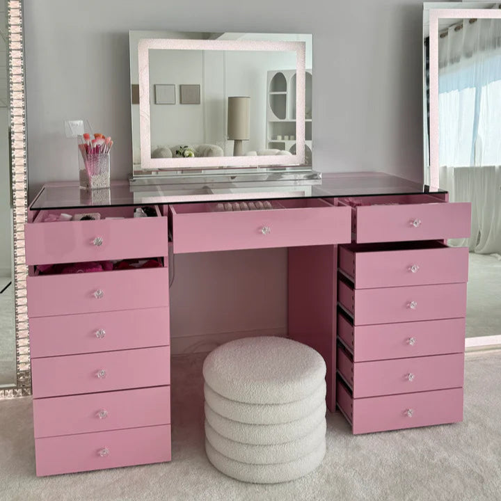 Idéale pour celles qui recherchent l’alliance parfaite entre style et praticité, la Pink Vanity deviendra rapidement la pièce maîtresse de votre espace.